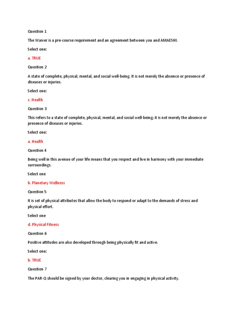 Physical Fitness Quiz 1 Physical Education 1 Studocu